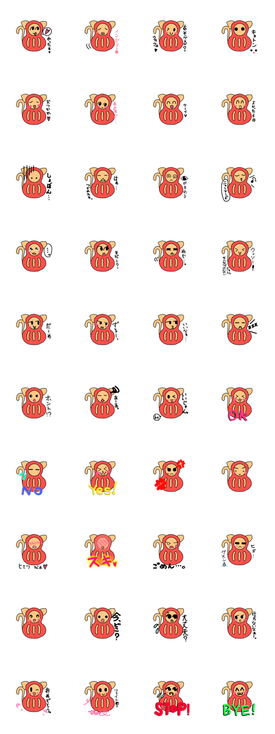 ねこダルマ Apple group♡ コメントをどうぞ だるまの着ぐるみを着たねこキャラクターです。是非、日常生活で活用してください。 このスタンプどう思う?!↓クリックで投票♪好き (0)かわいい (0)かっこいい (0)おもしろい (0)使いやすそう (0)欲しい (0)萌え (0)ほっこりする (0)おしゃれ (0)ゆるい (0)こわい (0)ウザい (0)キモい (0)ムカつく (0)持ってる (0)癒される (0)セクシー (0)個性的 (0)私は買わない (0)誰かプレゼントして! (0) 購入・プレゼントする Facebookでシェア Twitterでシェア