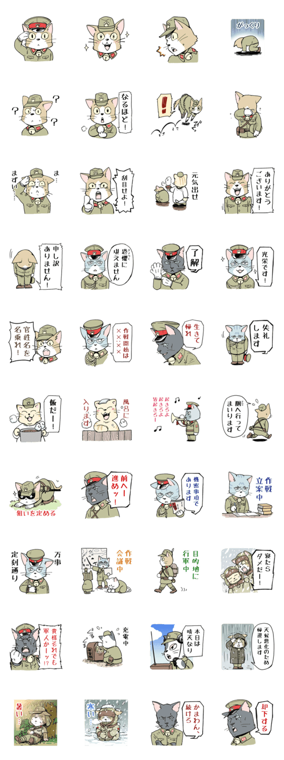 ねこミリ 坂木原レム コメントをどうぞ 猫の軍人スタンプです。ミリタリー好きな方も、ケモノ好きな方も、ぜひどうぞ! このスタンプどう思う?!↓クリックで投票♪好き (0)かわいい (0)かっこいい (0)おもしろい (0)使いやすそう (0)欲しい (0)萌え (0)ほっこりする (0)おしゃれ (0)ゆるい (0)こわい (0)ウザい (0)キモい (0)ムカつく (0)持ってる (0)癒される (0)セクシー (0)個性的 (0)私は買わない (0)誰かプレゼントして! (0) 購入・プレゼントする Facebookでシェア Twitterでシェア