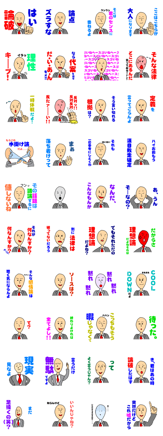 はい論破!!「アイツの語録」 ヨーケル コメントをどうぞ 精神年齢は中学生並み、得意技は煽る、言い訳、その他諸々の噂の『アイツ』がやってきた!戦々恐々、侃々諤々、津々浦々にわたるサノバビッチな彼の語録をみんなも使い倒せ! このスタンプどう思う?!↓クリックで投票♪好き (0)かわいい (0)かっこいい (0)おもしろい (0)使いやすそう (0)欲しい (0)萌え (0)ほっこりする (0)おしゃれ (0)ゆるい (0)こわい (0)ウザい (0)キモい (0)ムカつく (0)持ってる (0)癒される (0)セクシー (0)個性的 (0)私は買わない (0)誰かプレゼントして! (0) 購入・プレゼントする Facebookでシェア Twitterでシェア