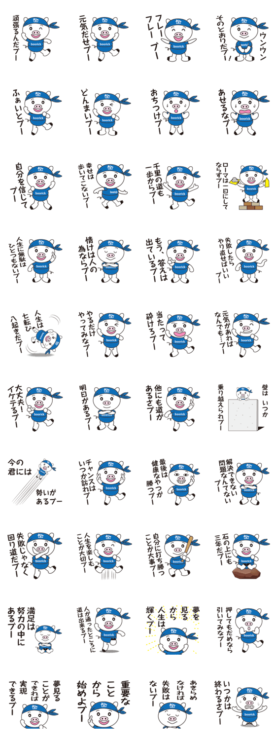 はげましのブタ ケン 杉田 コメントをどうぞ はげましの言葉がいっぱいつまったスタンプです。 ブーリックという名前のブタキャラです。レンガで家をコツコツつくることが得意です。よろしくね。 このスタンプどう思う?!↓クリックで投票♪好き (0)かわいい (0)かっこいい (0)おもしろい (0)使いやすそう (0)欲しい (0)萌え (0)ほっこりする (0)おしゃれ (0)ゆるい (0)こわい (0)ウザい (0)キモい (0)ムカつく (0)持ってる (0)癒される (0)セクシー (0)個性的 (0)私は買わない (0)誰かプレゼントして! (0) 購入・プレゼントする Facebookでシェア Twitterでシェア