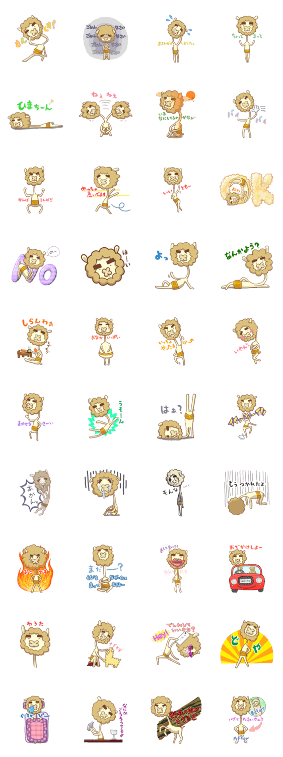 はげパカ ペル コメントをどうぞ 毛刈りのあと、なぜか毛が生えなくなってしまったアルパカ。みんなからはげパカと呼ばれています。お腹を冷やさないよう腹巻きを愛用中。 このスタンプどう思う?!↓クリックで投票♪好き (0)かわいい (0)かっこいい (0)おもしろい (0)使いやすそう (0)欲しい (0)萌え (0)ほっこりする (0)おしゃれ (0)ゆるい (0)こわい (0)ウザい (0)キモい (0)ムカつく (0)持ってる (0)癒される (0)セクシー (0)個性的 (0)私は買わない (0)誰かプレゼントして! (0) 購入・プレゼントする Facebookでシェア Twitterでシェア