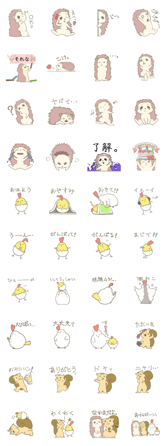 はりのさんとなかまたち かわの ゆりえ コメントをどうぞ はりねずみのはりのさんとそのなかまのりす(りすやまさん)とにわとりの親子(にわさん) このスタンプどう思う?!↓クリックで投票♪好き (0)かわいい (0)かっこいい (0)おもしろい (0)使いやすそう (0)欲しい (0)萌え (0)ほっこりする (0)おしゃれ (0)ゆるい (0)こわい (0)ウザい (0)キモい (0)ムカつく (0)持ってる (0)癒される (0)セクシー (0)個性的 (0)私は買わない (0)誰かプレゼントして! (0) 購入・プレゼントする Facebookでシェア Twitterでシェア