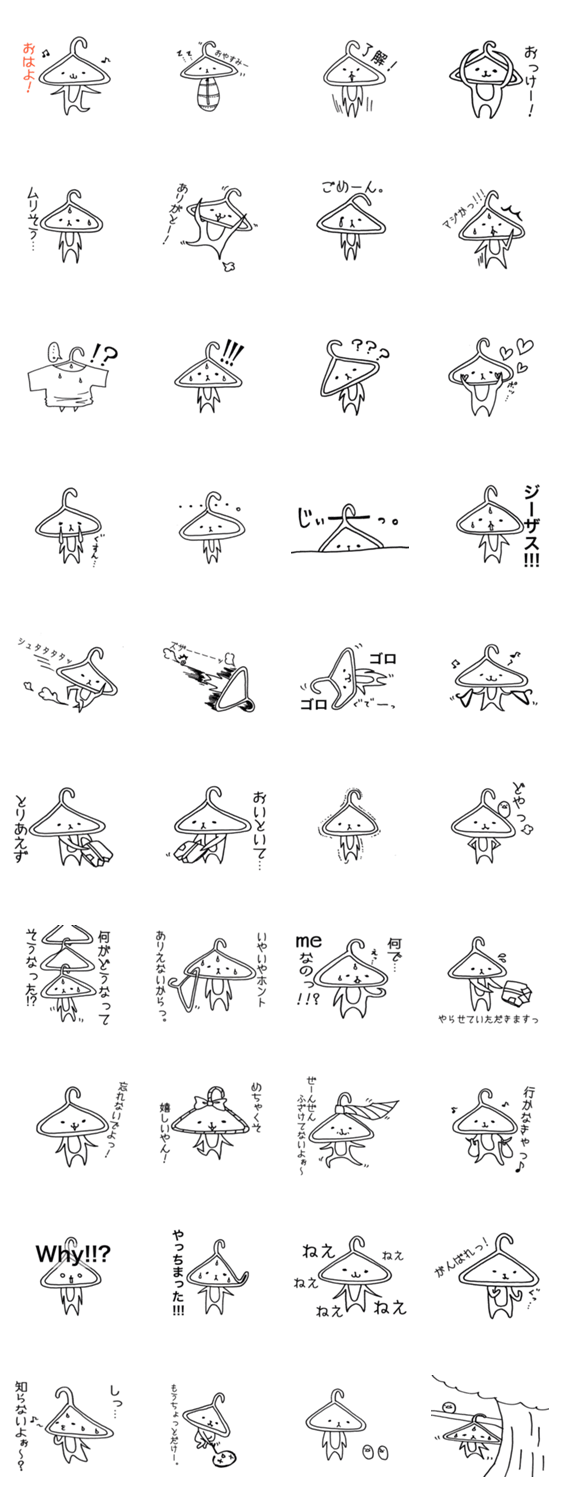 はんガーちゃん kippo. コメントをどうぞ はんガーちゃんのスタンプです。普段ハンガーを使うように、気軽に使っていただけると幸いです! このスタンプどう思う?!↓クリックで投票♪好き (0)かわいい (0)かっこいい (0)おもしろい (0)使いやすそう (0)欲しい (0)萌え (0)ほっこりする (0)おしゃれ (0)ゆるい (0)こわい (0)ウザい (0)キモい (0)ムカつく (0)持ってる (0)癒される (0)セクシー (0)個性的 (0)私は買わない (0)誰かプレゼントして! (0) 購入・プレゼントする Facebookでシェア Twitterでシェア