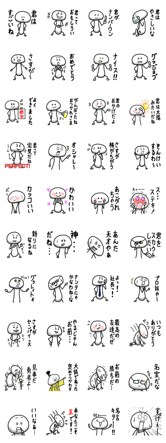 ひたすら褒めるキノコ スタジオ きのも コメントをどうぞ 様々な言葉でひたすらに褒めてくる白いキノコのスタンプです。 このスタンプどう思う?!↓クリックで投票♪好き (0)かわいい (0)かっこいい (0)おもしろい (0)使いやすそう (0)欲しい (0)萌え (0)ほっこりする (0)おしゃれ (0)ゆるい (0)こわい (0)ウザい (0)キモい (0)ムカつく (0)持ってる (0)癒される (0)セクシー (0)個性的 (0)私は買わない (0)誰かプレゼントして! (0) 購入・プレゼントする Facebookでシェア Twitterでシェア