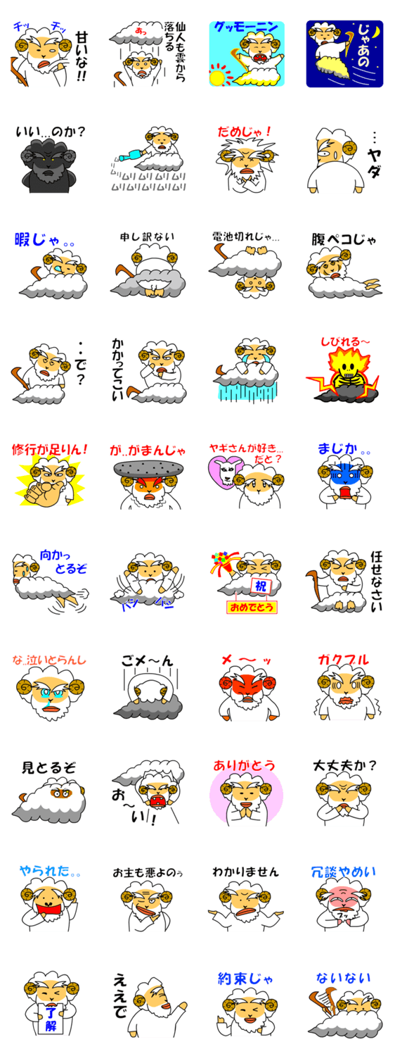 ひつじが仙人 Kfact コメントをどうぞ ひつじが千人、ではなく仙人となって登場。彼のライバルはもちろんヤギさんです。 このスタンプどう思う?!↓クリックで投票♪好き (0)かわいい (0)かっこいい (0)おもしろい (0)使いやすそう (0)欲しい (0)萌え (0)ほっこりする (0)おしゃれ (0)ゆるい (0)こわい (0)ウザい (0)キモい (0)ムカつく (0)持ってる (0)癒される (0)セクシー (0)個性的 (0)私は買わない (0)誰かプレゼントして! (0) 購入・プレゼントする Facebookでシェア Twitterでシェア