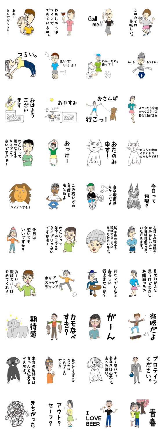 ひとみ画伯 Hitomi コメントをどうぞ プロクリエイター絶賛!34歳の大人が身の周りで起こったことを真剣に描いたスタンプ。皆さんも共感できることが多いのでは? このスタンプどう思う?!↓クリックで投票♪好き (0)かわいい (0)かっこいい (0)おもしろい (0)使いやすそう (0)欲しい (0)萌え (0)ほっこりする (0)おしゃれ (0)ゆるい (0)こわい (0)ウザい (0)キモい (0)ムカつく (0)持ってる (0)癒される (0)セクシー (0)個性的 (0)私は買わない (0)誰かプレゼントして! (0) 購入・プレゼントする Facebookでシェア Twitterでシェア