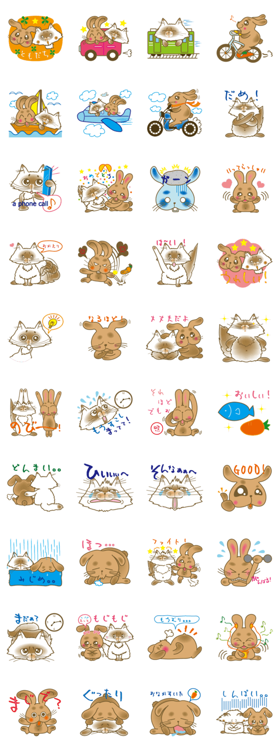 ひまお&うさみ Atelier KOZUE コメントをどうぞ ヒマラヤン猫の「ひまお」と、もふもふうさぎの「うさみ」が友達になって登場です!ねこ&ウサギ、2匹の友情と日常を、あなたも共有してみてください! このスタンプどう思う?!↓クリックで投票♪好き (0)かわいい (0)かっこいい (0)おもしろい (0)使いやすそう (0)欲しい (0)萌え (0)ほっこりする (0)おしゃれ (0)ゆるい (0)こわい (0)ウザい (0)キモい (0)ムカつく (0)持ってる (0)癒される (0)セクシー (0)個性的 (0)私は買わない (0)誰かプレゼントして! (0) 購入・プレゼントする Facebookでシェア Twitterでシェア