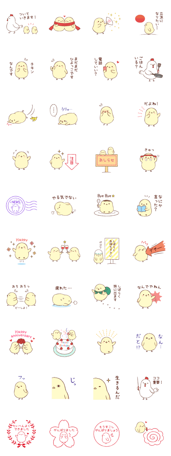 ひよこの毎日 おがわゆきこ コメントをどうぞ 夢見るひよこのほんわかした日常スタンプです。 このスタンプどう思う?!↓クリックで投票♪好き (0)かわいい (0)かっこいい (3)おもしろい (0)使いやすそう (0)欲しい (0)萌え (0)ほっこりする (0)おしゃれ (0)ゆるい (0)こわい (0)ウザい (0)キモい (0)ムカつく (0)持ってる (0)癒される (0)セクシー (0)個性的 (0)私は買わない (0)誰かプレゼントして! (0) 購入・プレゼントする Facebookでシェア Twitterでシェア