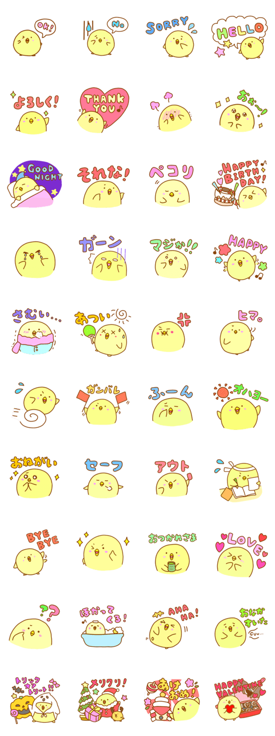 ひよこスタンプ! ゆえ コメントをどうぞ あいさつや返事、クリスマスやお正月の行事など、日常会話で毎日使えるゆるかわいいヒヨコのスタンプです! 鳥や動物好きな人や、学生、社会人など色々な人におすすめです このスタンプどう思う?!↓クリックで投票♪好き (0)かわいい (0)かっこいい (0)おもしろい (0)使いやすそう (0)欲しい (0)萌え (0)ほっこりする (0)おしゃれ (0)ゆるい (0)こわい (0)ウザい (0)キモい (0)ムカつく (0)持ってる (0)癒される (0)セクシー (0)個性的 (0)私は買わない (0)誰かプレゼントして! (0) 購入・プレゼントする Facebookでシェア Twitterでシェア