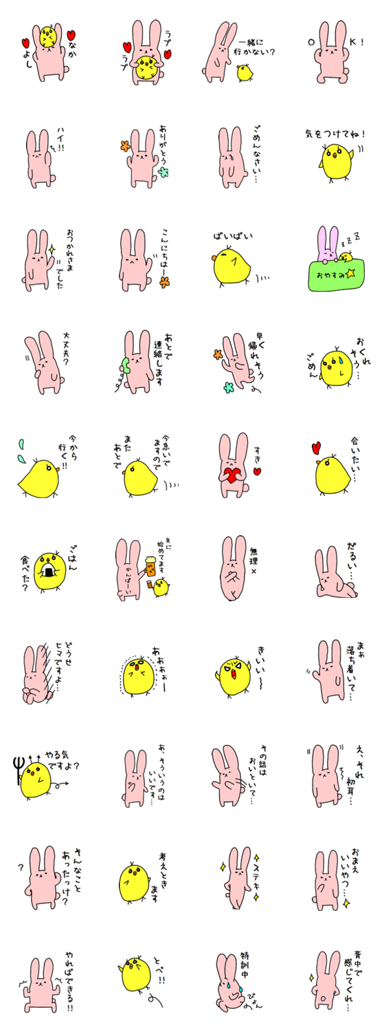 ぴようさ とまる コメントをどうぞ ゆるいひよことゆるいうさぎの日常スタンプ! このスタンプどう思う?!↓クリックで投票♪好き (0)かわいい (0)かっこいい (0)おもしろい (0)使いやすそう (0)欲しい (0)萌え (0)ほっこりする (0)おしゃれ (0)ゆるい (0)こわい (0)ウザい (0)キモい (0)ムカつく (0)持ってる (0)癒される (0)セクシー (0)個性的 (0)私は買わない (0)誰かプレゼントして! (0) 購入・プレゼントする Facebookでシェア Twitterでシェア