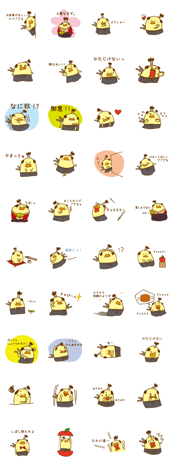 ぴよざむらい ぽてまる コメントをどうぞ かわいいひよこ「ぴよざむらい」の武士語スタンプです。 このスタンプどう思う?!↓クリックで投票♪好き (0)かわいい (0)かっこいい (0)おもしろい (0)使いやすそう (0)欲しい (0)萌え (0)ほっこりする (0)おしゃれ (0)ゆるい (0)こわい (0)ウザい (0)キモい (0)ムカつく (0)持ってる (0)癒される (0)セクシー (0)個性的 (0)私は買わない (0)誰かプレゼントして! (0) 購入・プレゼントする Facebookでシェア Twitterでシェア