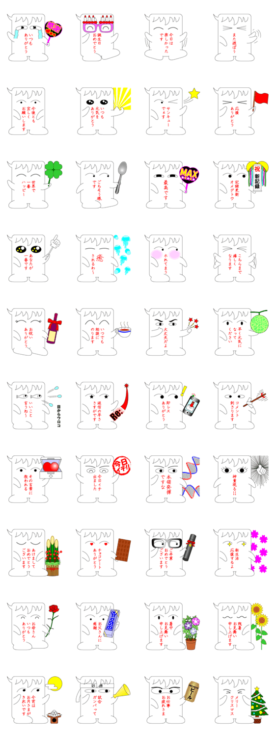 ふきだしでありがとう GALA-K コメントをどうぞ 吹き出しタイプのキャラクターが、お祝いや感謝のコメントを届けます。日常や定番行事の時にあなたの大切な方へ。。。 このスタンプどう思う?!↓クリックで投票♪好き (0)かわいい (0)かっこいい (0)おもしろい (0)使いやすそう (0)欲しい (0)萌え (0)ほっこりする (0)おしゃれ (0)ゆるい (0)こわい (0)ウザい (0)キモい (0)ムカつく (0)持ってる (0)癒される (0)セクシー (0)個性的 (0)私は買わない (0)誰かプレゼントして! (0) 購入・プレゼントする Facebookでシェア Twitterでシェア