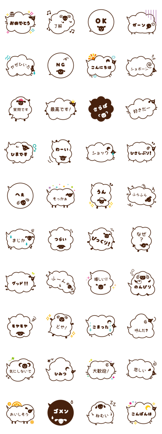 ふきだしヒツジ セリフ付き 2 kyoko コメントをどうぞ 吹き出しの形をしたメッセージ付きのひつじです。第二弾です。2015年の干支のもこもこふわふわ羊です。シンプルなので男女問わず使用出来ると思います。 このスタンプどう思う?!↓クリックで投票♪好き (0)かわいい (0)かっこいい (0)おもしろい (0)使いやすそう (0)欲しい (0)萌え (0)ほっこりする (0)おしゃれ (0)ゆるい (0)こわい (0)ウザい (0)キモい (0)ムカつく (0)持ってる (0)癒される (0)セクシー (0)個性的 (0)私は買わない (0)誰かプレゼントして! (0) 購入・プレゼントする Facebookでシェア Twitterでシェア