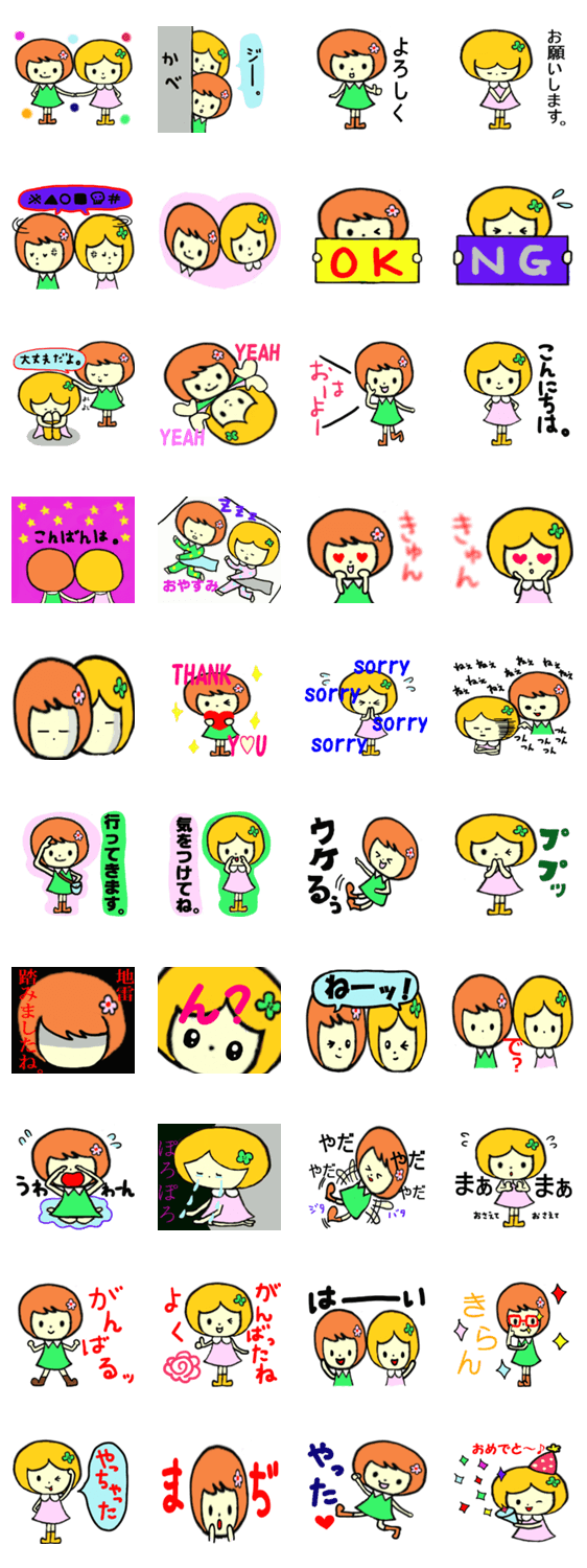 ふたりはミコ☆カコ双子ちゃん。 Little leaf コメントをどうぞ 可愛い双子ちゃんの ミコ・カコ。ふたりのやり取りが楽しいスタンプです。内容によっては2個使いもできますよ。 このスタンプどう思う?!↓クリックで投票♪好き (0)かわいい (0)かっこいい (0)おもしろい (0)使いやすそう (0)欲しい (0)萌え (0)ほっこりする (0)おしゃれ (0)ゆるい (0)こわい (0)ウザい (0)キモい (0)ムカつく (0)持ってる (0)癒される (0)セクシー (0)個性的 (0)私は買わない (0)誰かプレゼントして! (0) 購入・プレゼントする Facebookでシェア Twitterでシェア