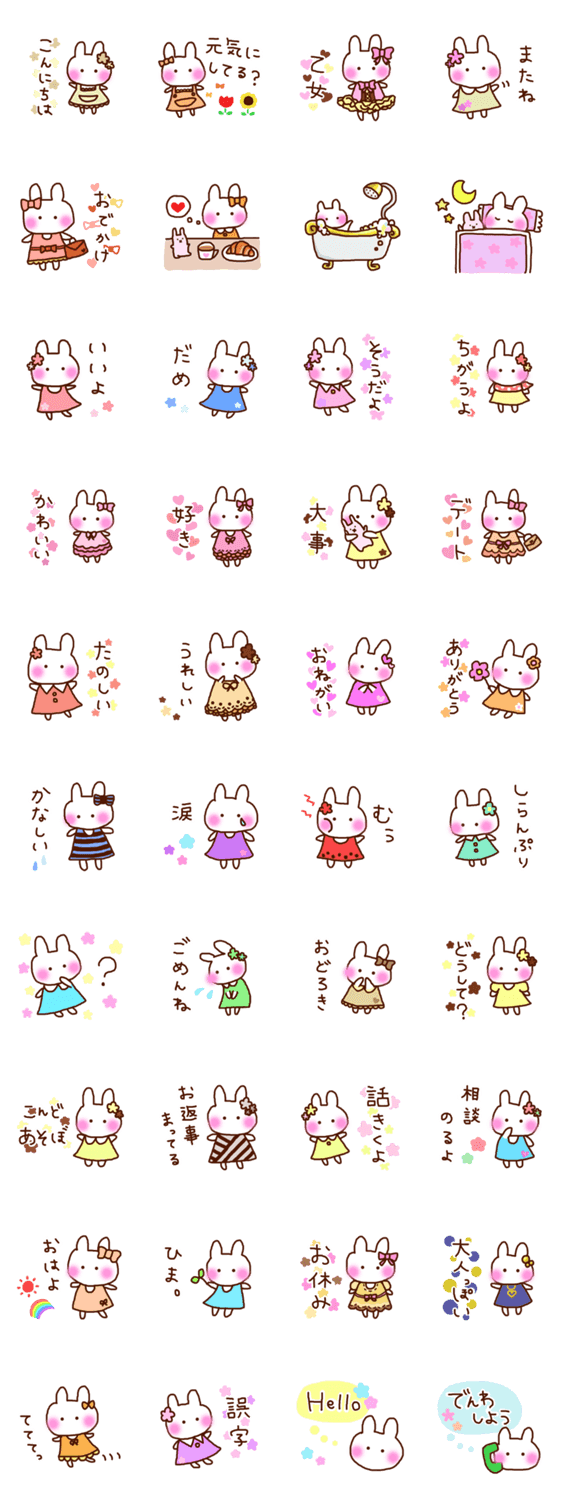 ふわりちゃん。 へぼ コメントをどうぞ ピンクのほっぺが可愛いゆるふわなうさぎさん。お花やリボンの耳飾りがお気に入りです。大切な人とのメッセージのお供にぜひお役立て下さい。 このスタンプどう思う?!↓クリックで投票♪好き (0)かわいい (0)かっこいい (0)おもしろい (0)使いやすそう (0)欲しい (0)萌え (0)ほっこりする (0)おしゃれ (0)ゆるい (0)こわい (0)ウザい (0)キモい (0)ムカつく (0)持ってる (0)癒される (0)セクシー (0)個性的 (0)私は買わない (0)誰かプレゼントして! (0) 購入・プレゼントする Facebookでシェア Twitterでシェア