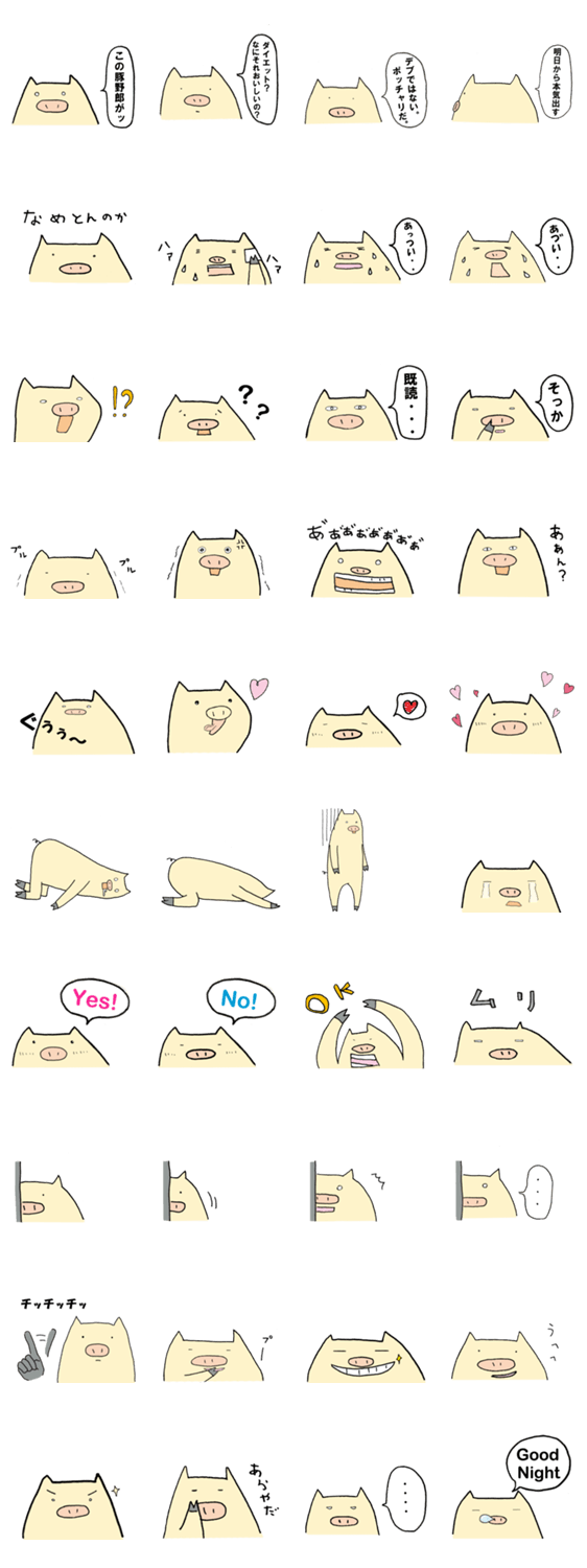 ぶたやろう Mr.Pig コメントをどうぞ ぶたです。ミッキー・ブラウンという名前がありますが、みんなには「ぶたやろう」と呼ばれています。暑がりで汗っかきです。ダイエットが嫌いです。どうぞよろしく。 このスタンプどう思う?!↓クリックで投票♪好き (0)かわいい (0)かっこいい (0)おもしろい (0)使いやすそう (0)欲しい (0)萌え (0)ほっこりする (0)おしゃれ (0)ゆるい (0)こわい (0)ウザい (0)キモい (0)ムカつく (0)持ってる (0)癒される (0)セクシー (0)個性的 (0)私は買わない (0)誰かプレゼントして! (0) 購入・プレゼントする Facebookでシェア Twitterでシェア