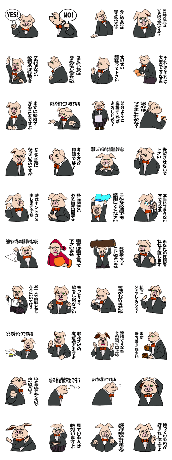 ぶた執事 主人を励ます はばねろちゃん コメントをどうぞ 執事が主人の不甲斐なさを嘆き、どうにかして励まそうとしますが、根が正直ではないので直接自分の思った事が言えません。そんな時あなたにもありませんか? このスタンプどう思う?!↓クリックで投票♪好き (0)かわいい (0)かっこいい (0)おもしろい (0)使いやすそう (0)欲しい (0)萌え (0)ほっこりする (0)おしゃれ (0)ゆるい (0)こわい (0)ウザい (0)キモい (0)ムカつく (0)持ってる (0)癒される (0)セクシー (0)個性的 (0)私は買わない (0)誰かプレゼントして! (0) 購入・プレゼントする Facebookでシェア Twitterでシェア