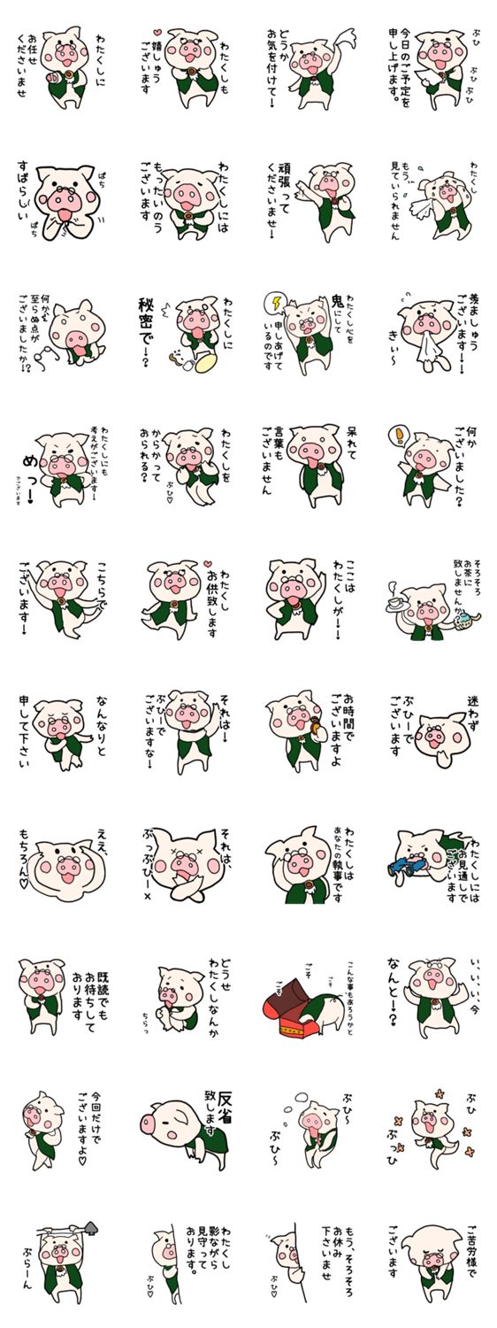 ぶた執事 しょこ コメントをどうぞ ぶた執事でございます。時にやさしく時にきびしく。いつもあなたのお傍におつかえいたします。ブタさん好きにおすすめのスタンプです。ぶたさんシリーズ好評発売中です。 このスタンプどう思う?!↓クリックで投票♪好き (0)かわいい (0)かっこいい (0)おもしろい (0)使いやすそう (0)欲しい (0)萌え (0)ほっこりする (0)おしゃれ (0)ゆるい (0)こわい (0)ウザい (0)キモい (0)ムカつく (0)持ってる (0)癒される (0)セクシー (0)個性的 (0)私は買わない (0)誰かプレゼントして! (0) 購入・プレゼントする Facebookでシェア Twitterでシェア