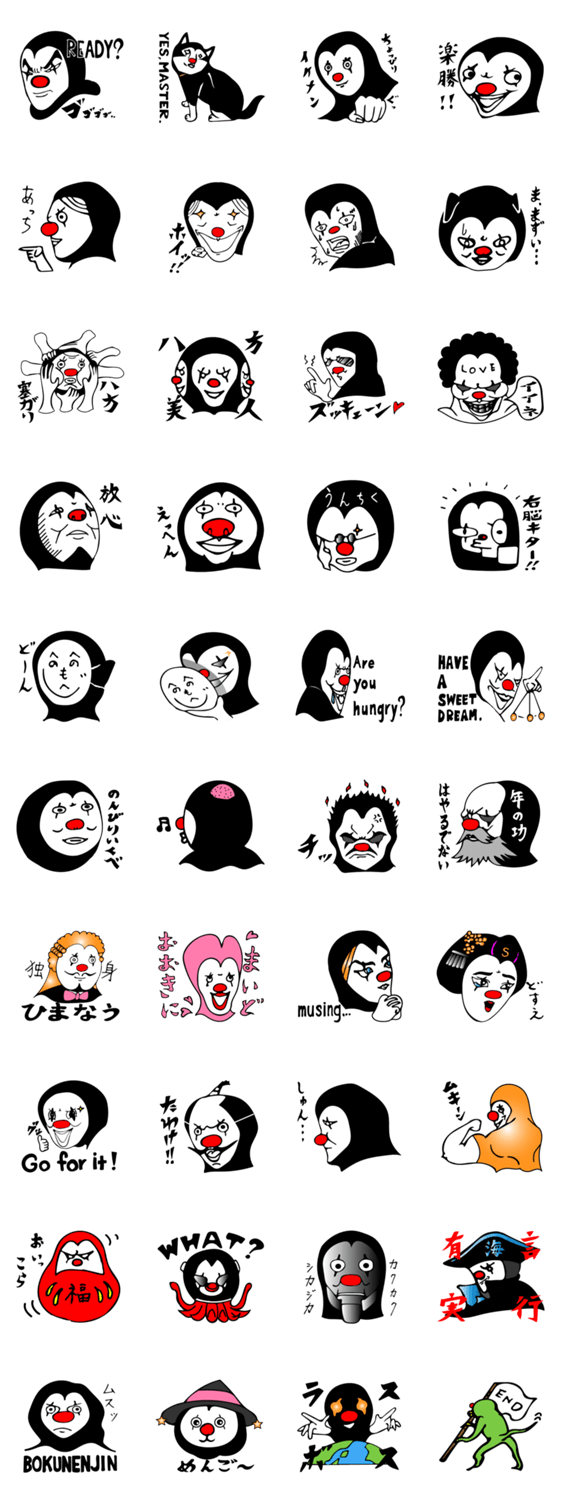 へんてこピエロ クロニクル SHINDROME コメントをどうぞ 雑多な進化を遂げた道化師達。そんな彼らの一部を紹介します。 このスタンプどう思う?!↓クリックで投票♪好き (0)かわいい (0)かっこいい (0)おもしろい (0)使いやすそう (0)欲しい (0)萌え (0)ほっこりする (0)おしゃれ (0)ゆるい (0)こわい (0)ウザい (0)キモい (0)ムカつく (0)持ってる (0)癒される (0)セクシー (0)個性的 (0)私は買わない (0)誰かプレゼントして! (0) 購入・プレゼントする Facebookでシェア Twitterでシェア