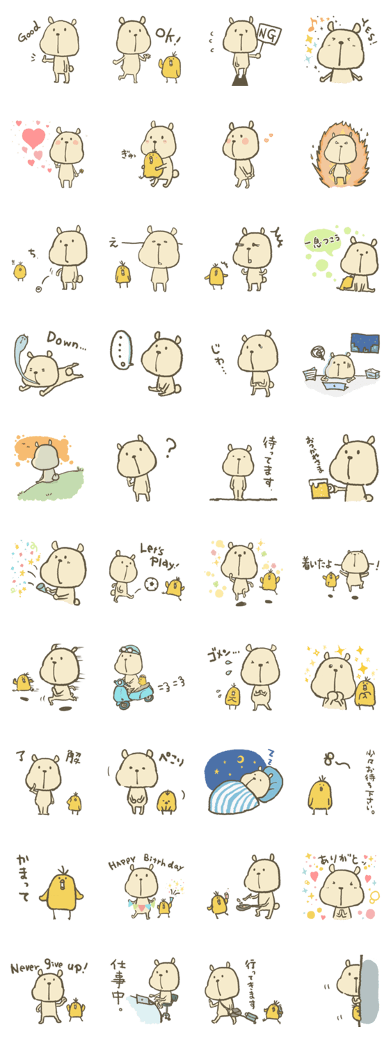 ほっこりハッピーのブン Hitomin コメントをどうぞ はじめまして。ほっこりハッピーのブンです。ボクの使命は、みんなの心を温めハッピーな気持ちに導くこと。相棒のピートといっしょにみんなの気持ちを表現するよ。 このスタンプどう思う?!↓クリックで投票♪好き (0)かわいい (0)かっこいい (0)おもしろい (0)使いやすそう (0)欲しい (0)萌え (0)ほっこりする (0)おしゃれ (0)ゆるい (0)こわい (0)ウザい (0)キモい (0)ムカつく (0)持ってる (0)癒される (0)セクシー (0)個性的 (0)私は買わない (0)誰かプレゼントして! (0) 購入・プレゼントする Facebookでシェア Twitterでシェア