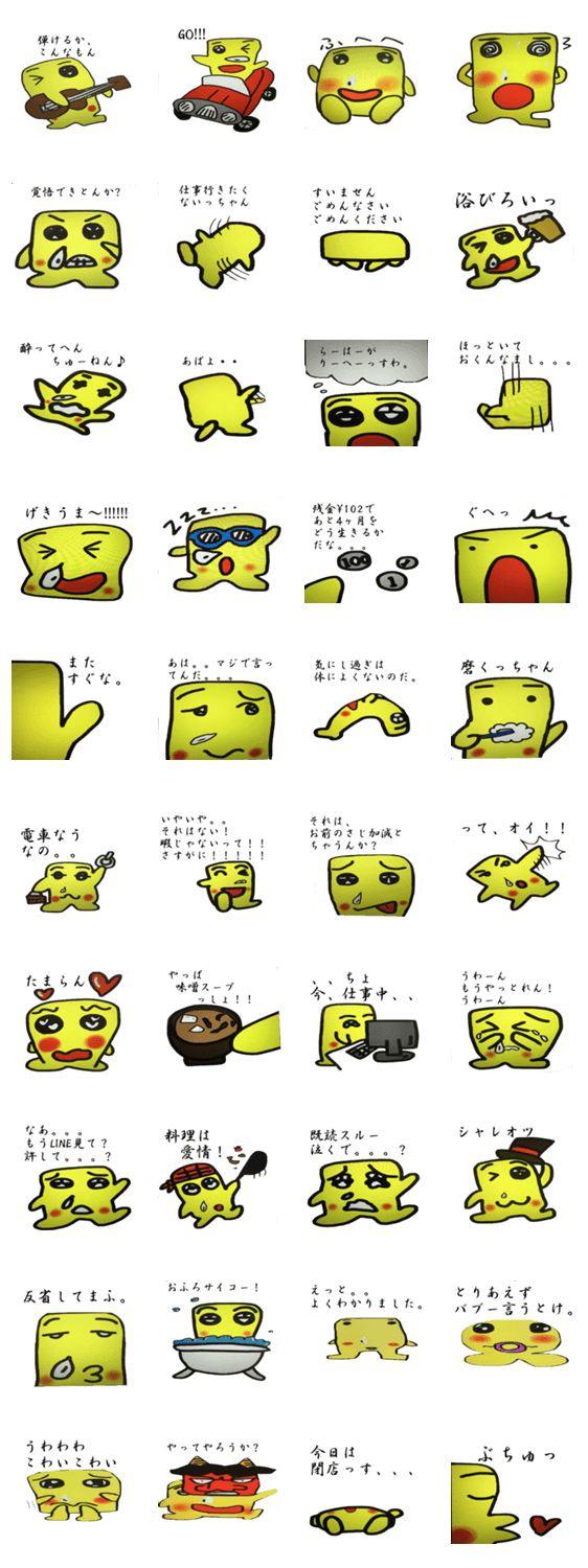 ほっぺた・THE・落ちたろう TAMATE BOX コメントをどうぞ うまいものをたべて ほっぺたが落ちたろう。こころのきれいな 黄色いやつ。 このスタンプどう思う?!↓クリックで投票♪好き (0)かわいい (0)かっこいい (0)おもしろい (0)使いやすそう (0)欲しい (0)萌え (0)ほっこりする (0)おしゃれ (0)ゆるい (0)こわい (0)ウザい (0)キモい (0)ムカつく (0)持ってる (0)癒される (0)セクシー (0)個性的 (0)私は買わない (0)誰かプレゼントして! (0) 購入・プレゼントする Facebookでシェア Twitterでシェア