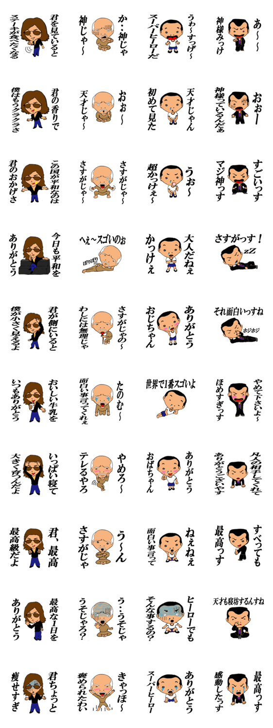 ほめてほめてほめまくれ makewall コメントをどうぞ 相手の方をほめて気分を良くし一日一膳しよう。色々な種類のほめ方が満載。是非使ってみて下さい。 このスタンプどう思う?!↓クリックで投票♪好き (0)かわいい (0)かっこいい (0)おもしろい (0)使いやすそう (0)欲しい (0)萌え (0)ほっこりする (0)おしゃれ (0)ゆるい (0)こわい (0)ウザい (0)キモい (0)ムカつく (0)持ってる (0)癒される (0)セクシー (0)個性的 (0)私は買わない (0)誰かプレゼントして! (0) 購入・プレゼントする Facebookでシェア Twitterでシェア