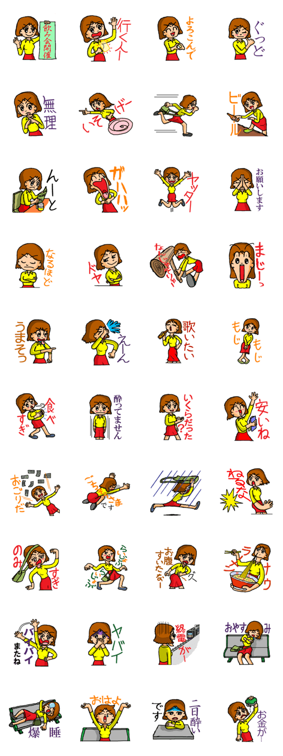 ほろ酔いガール、OL真美ちゃん。 UDONTAMA KAKI コメントをどうぞ ほろ酔いOLの乙 真美ちゃん。仕事のストレスは呑んで発散。今日も行く行く居酒屋に。明日も仕事がんばるぞ! このスタンプどう思う?!↓クリックで投票♪好き (2)かわいい (0)かっこいい (0)おもしろい (0)使いやすそう (0)欲しい (0)萌え (0)ほっこりする (0)おしゃれ (0)ゆるい (0)こわい (0)ウザい (0)キモい (0)ムカつく (0)持ってる (0)癒される (0)セクシー (0)個性的 (0)私は買わない (0)誰かプレゼントして! (0) 購入・プレゼントする Facebookでシェア Twitterでシェア
