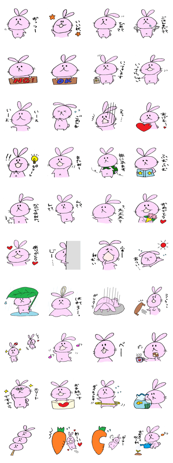 ほんわかゆるうさぎ。 nyankosan コメントをどうぞ ゆるいうさぎのスタンプです。 このスタンプどう思う?!↓クリックで投票♪好き (0)かわいい (0)かっこいい (0)おもしろい (0)使いやすそう (0)欲しい (0)萌え (0)ほっこりする (0)おしゃれ (0)ゆるい (0)こわい (0)ウザい (0)キモい (0)ムカつく (0)持ってる (0)癒される (0)セクシー (0)個性的 (0)私は買わない (0)誰かプレゼントして! (0) 購入・プレゼントする Facebookでシェア Twitterでシェア