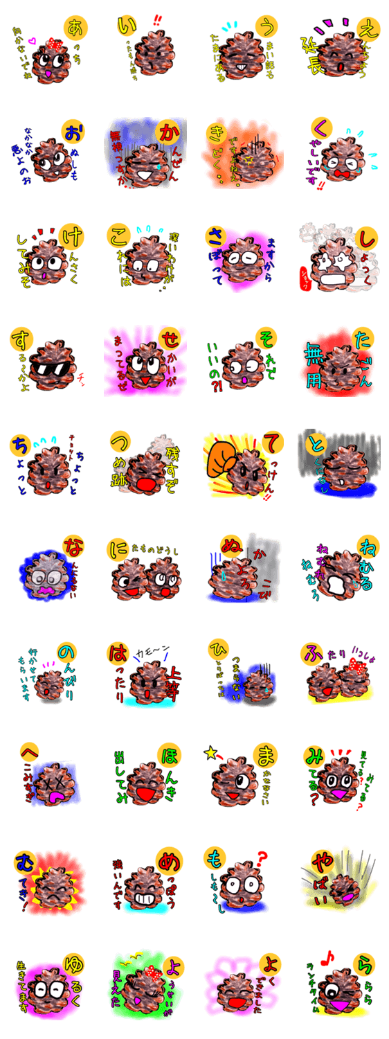 ぼく、まつぼっくり 顔文字風カルタVer. ふう コメントをどうぞ ぼく、まつぼっくり。50音カルタ風まつぼっくりの顔文字スタンプです。 このスタンプどう思う?!↓クリックで投票♪好き (0)かわいい (0)かっこいい (0)おもしろい (0)使いやすそう (0)欲しい (0)萌え (0)ほっこりする (0)おしゃれ (0)ゆるい (0)こわい (0)ウザい (0)キモい (0)ムカつく (0)持ってる (0)癒される (0)セクシー (0)個性的 (0)私は買わない (0)誰かプレゼントして! (0) 購入・プレゼントする Facebookでシェア Twitterでシェア