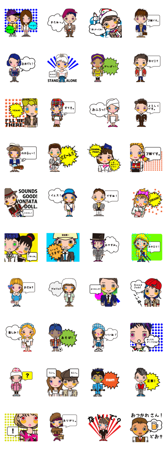 ぼんたたドール ぼんたた コメントをどうぞ VONTATA DOLLは着せ替え人形のキャラクターです。髪型やファッションアイテムの変化させて東京のライフスタイルや多様性を愛らしく表現したいと思い制作してみました。 このスタンプどう思う?!↓クリックで投票♪好き (0)かわいい (0)かっこいい (0)おもしろい (0)使いやすそう (0)欲しい (0)萌え (0)ほっこりする (0)おしゃれ (0)ゆるい (0)こわい (0)ウザい (0)キモい (0)ムカつく (0)持ってる (0)癒される (0)セクシー (0)個性的 (0)私は買わない (0)誰かプレゼントして! (0) 購入・プレゼントする Facebookでシェア Twitterでシェア
