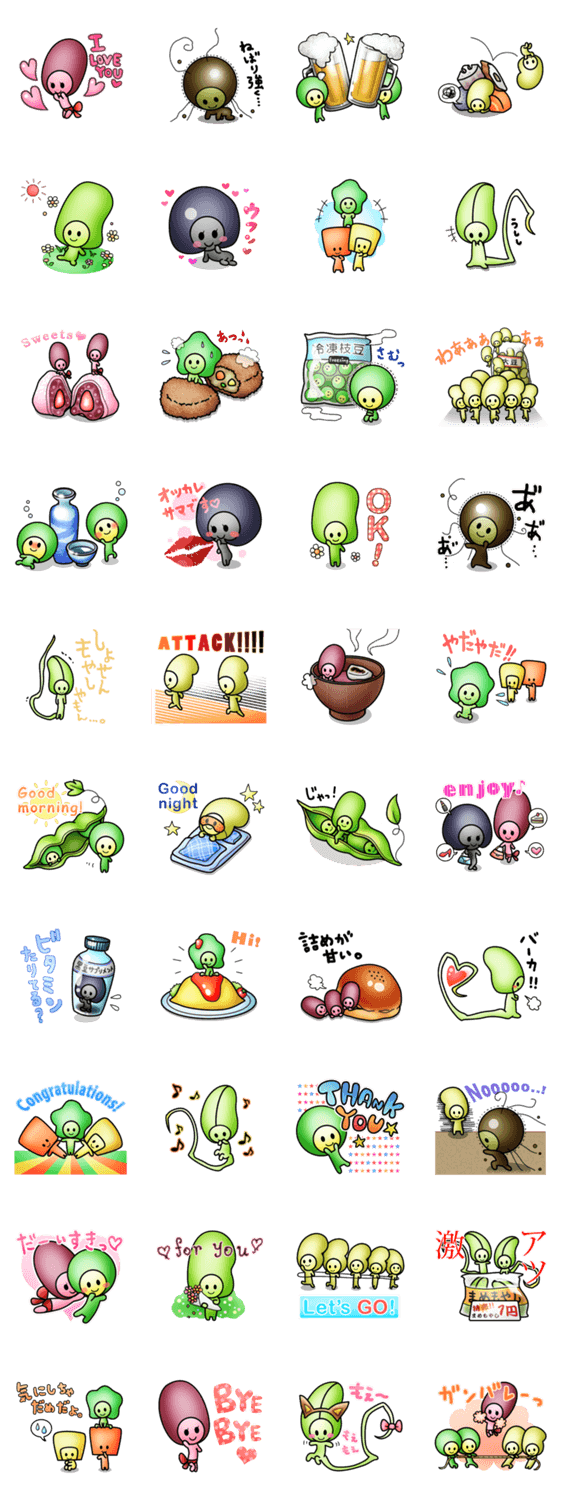 まめキャラスタンプ(キュート編) たえまめ コメントをどうぞ まあるい頭のまめ達がスタンプとなって登場。 枝豆、空豆、黒豆、納豆など…さまざまな豆類たちが、ゆるーい癒しをご提供。 このスタンプどう思う?!↓クリックで投票♪好き (0)かわいい (0)かっこいい (0)おもしろい (0)使いやすそう (0)欲しい (0)萌え (0)ほっこりする (0)おしゃれ (0)ゆるい (0)こわい (0)ウザい (0)キモい (0)ムカつく (0)持ってる (0)癒される (0)セクシー (0)個性的 (0)私は買わない (0)誰かプレゼントして! (0) 購入・プレゼントする Facebookでシェア Twitterでシェア