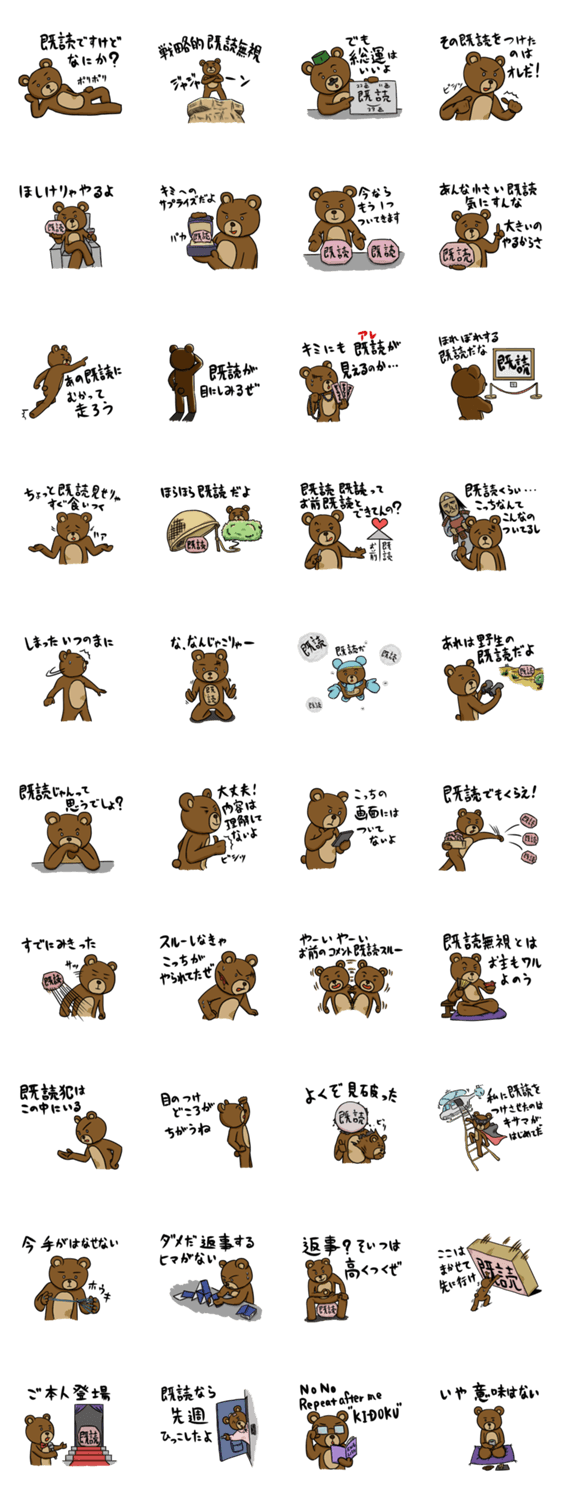 まゆクマ 〜既読対抗編〜 ドナイ コメントをどうぞ 眉毛が特徴のまゆクマがお送りする、「既読じゃん」への対抗スタンプです。 このスタンプどう思う?!↓クリックで投票♪好き (0)かわいい (0)かっこいい (0)おもしろい (0)使いやすそう (0)欲しい (0)萌え (0)ほっこりする (0)おしゃれ (0)ゆるい (0)こわい (0)ウザい (0)キモい (0)ムカつく (0)持ってる (0)癒される (0)セクシー (0)個性的 (0)私は買わない (0)誰かプレゼントして! (0) 購入・プレゼントする Facebookでシェア Twitterでシェア