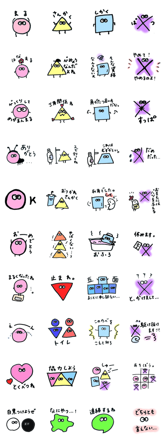 まる、さんかく、しかく、ばつ あん子姉妹 コメントをどうぞ かたちでおもいをつたえよう。 このスタンプどう思う?!↓クリックで投票♪好き (0)かわいい (0)かっこいい (0)おもしろい (0)使いやすそう (0)欲しい (0)萌え (0)ほっこりする (0)おしゃれ (0)ゆるい (0)こわい (0)ウザい (0)キモい (0)ムカつく (0)持ってる (0)癒される (0)セクシー (0)個性的 (0)私は買わない (0)誰かプレゼントして! (0) 購入・プレゼントする Facebookでシェア Twitterでシェア