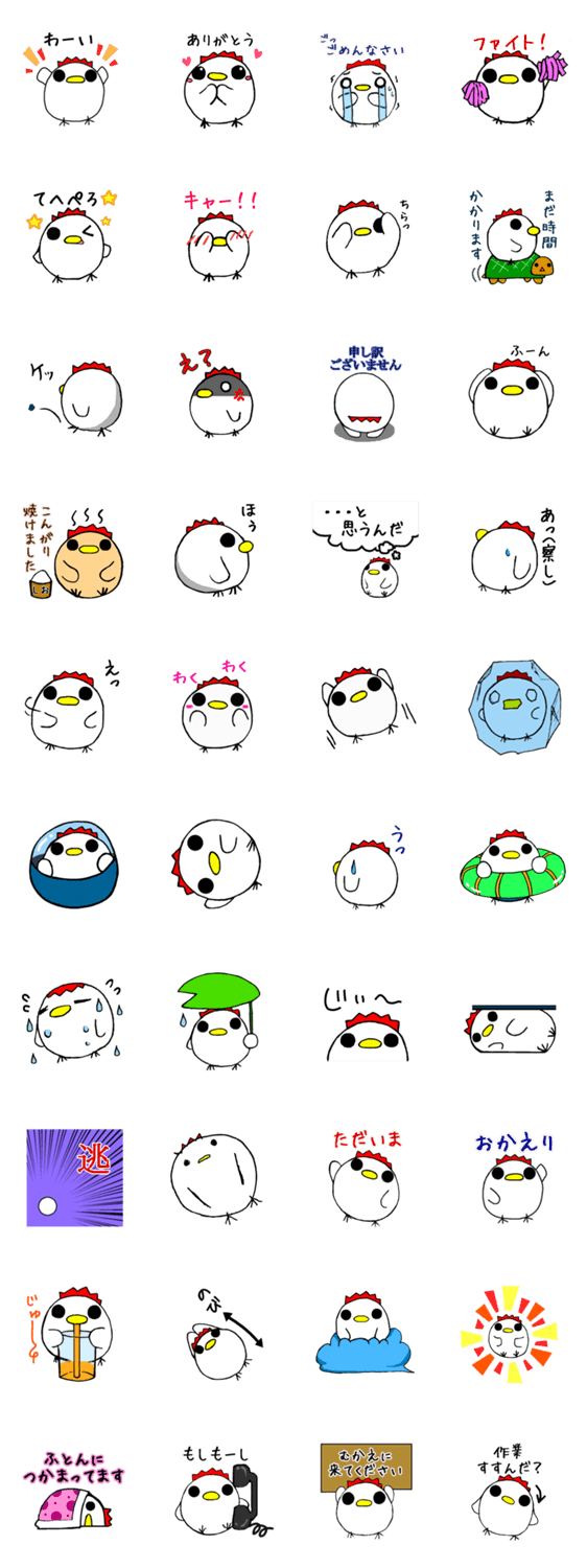 まるいにわとり2 森村陸 コメントをどうぞ かわいいニワトリのスタンプ第2弾です☆あいさつを多めに作成しました。夏っぽいのも入れてみました!第1弾も好評発売中です! このスタンプどう思う?!↓クリックで投票♪好き (0)かわいい (0)かっこいい (0)おもしろい (0)使いやすそう (0)欲しい (0)萌え (0)ほっこりする (0)おしゃれ (0)ゆるい (0)こわい (0)ウザい (0)キモい (0)ムカつく (0)持ってる (0)癒される (0)セクシー (0)個性的 (0)私は買わない (0)誰かプレゼントして! (0) 購入・プレゼントする Facebookでシェア Twitterでシェア