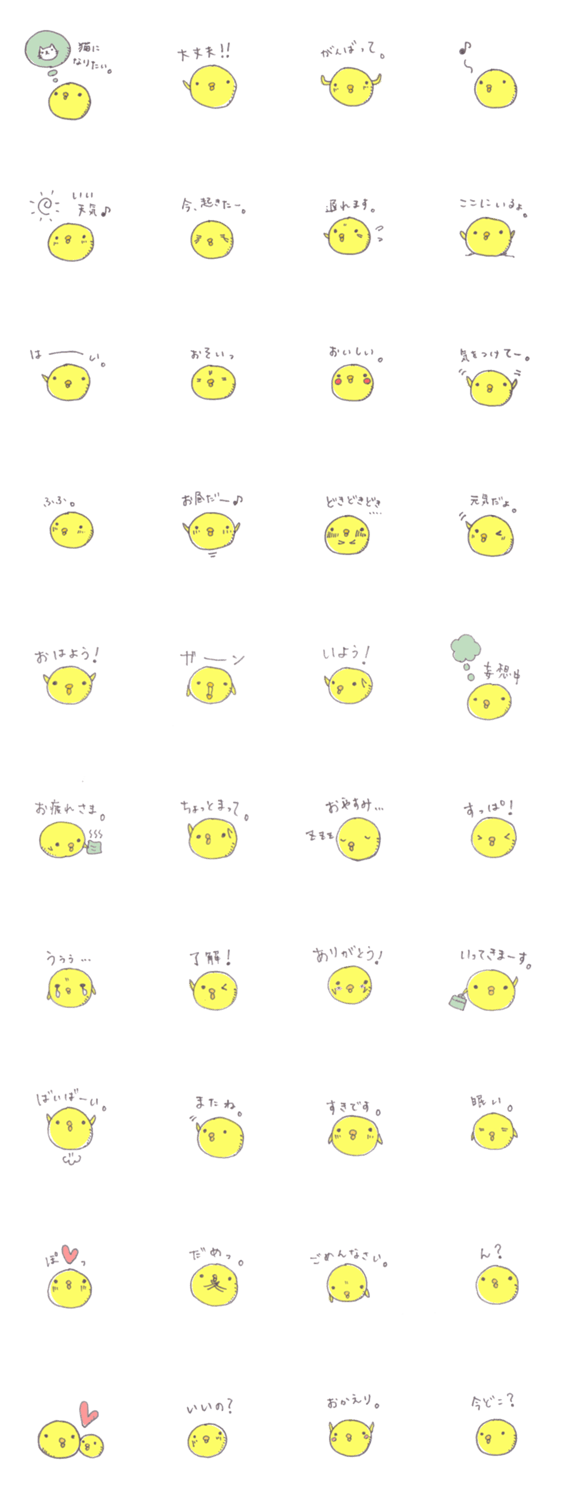 まるぴよ。 ちょここ∪・ェ・∪ コメントをどうぞ まあるいひよこのスタンプです。猫になりたいという夢を持っています。日常会話に使いやすいぴよを取り揃えました。 このスタンプどう思う?!↓クリックで投票♪好き (0)かわいい (0)かっこいい (0)おもしろい (0)使いやすそう (0)欲しい (0)萌え (0)ほっこりする (0)おしゃれ (0)ゆるい (0)こわい (0)ウザい (0)キモい (0)ムカつく (0)持ってる (0)癒される (0)セクシー (0)個性的 (0)私は買わない (0)誰かプレゼントして! (0) 購入・プレゼントする Facebookでシェア Twitterでシェア