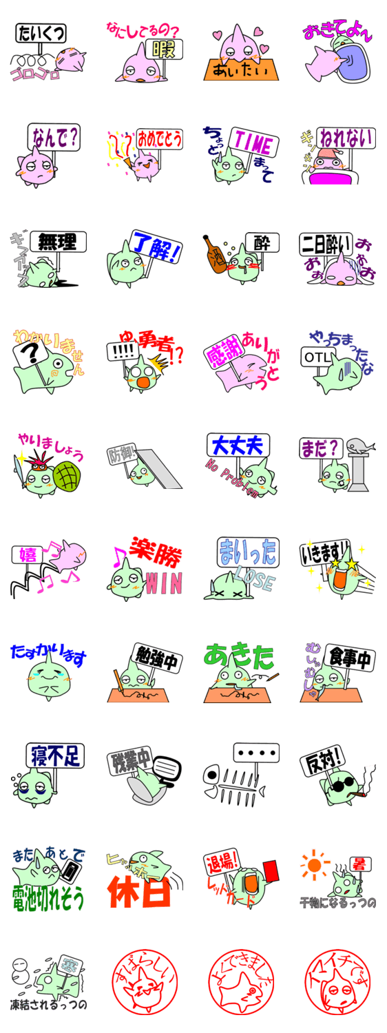まんぼのすけとまあちゃんまん けんぼう コメントをどうぞ 日常のやりとりにペタッと魚を添えてみませんか。世界がちょっと明るくなるかも。 このスタンプどう思う?!↓クリックで投票♪好き (0)かわいい (0)かっこいい (0)おもしろい (0)使いやすそう (0)欲しい (0)萌え (0)ほっこりする (0)おしゃれ (0)ゆるい (0)こわい (0)ウザい (0)キモい (0)ムカつく (0)持ってる (0)癒される (0)セクシー (0)個性的 (0)私は買わない (0)誰かプレゼントして! (0) 購入・プレゼントする Facebookでシェア Twitterでシェア