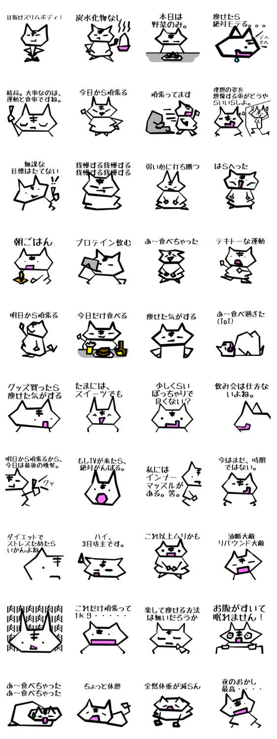 まんまるネコダイエット中 和光堂仁 コメントをどうぞ ダイエット中のまんまるネコが、皆さんとゆるく可愛く、ダイエット有る有るを共有します。 このスタンプどう思う?!↓クリックで投票♪好き (0)かわいい (0)かっこいい (0)おもしろい (0)使いやすそう (0)欲しい (0)萌え (0)ほっこりする (0)おしゃれ (0)ゆるい (0)こわい (0)ウザい (0)キモい (0)ムカつく (0)持ってる (0)癒される (0)セクシー (0)個性的 (0)私は買わない (0)誰かプレゼントして! (0) 購入・プレゼントする Facebookでシェア Twitterでシェア