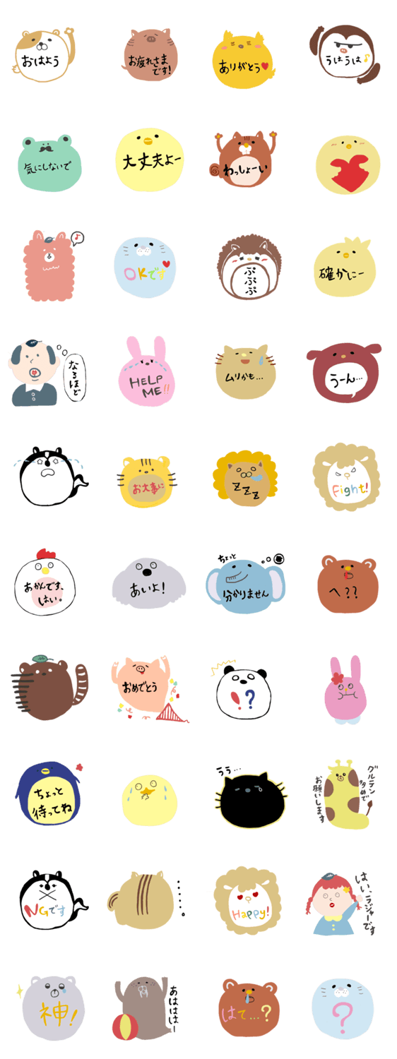 まんまる!おまんじゅう動物 ぼん コメントをどうぞ ほぼ丸ーい動物たちがあなたの代わりに挨拶をしたり返事をいたします。ほぼ丸いです。ほぼ動物です。 このスタンプどう思う?!↓クリックで投票♪好き (0)かわいい (0)かっこいい (0)おもしろい (0)使いやすそう (0)欲しい (0)萌え (0)ほっこりする (0)おしゃれ (0)ゆるい (0)こわい (0)ウザい (0)キモい (0)ムカつく (0)持ってる (0)癒される (0)セクシー (0)個性的 (0)私は買わない (0)誰かプレゼントして! (0) 購入・プレゼントする Facebookでシェア Twitterでシェア