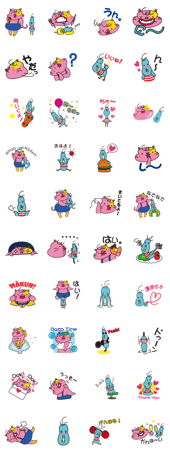 まー君とチー坊 kusukusu コメントをどうぞ マイペースでとっても食いしん坊なデブ猫まー君と、とってもまじめな小鳥のチー坊の仲良しコンビ。二人のゆる〜くて、楽しいスタンプです。 このスタンプどう思う?!↓クリックで投票♪好き (0)かわいい (0)かっこいい (0)おもしろい (0)使いやすそう (0)欲しい (0)萌え (0)ほっこりする (0)おしゃれ (0)ゆるい (0)こわい (0)ウザい (0)キモい (0)ムカつく (0)持ってる (0)癒される (0)セクシー (0)個性的 (0)私は買わない (0)誰かプレゼントして! (0) 購入・プレゼントする Facebookでシェア Twitterでシェア