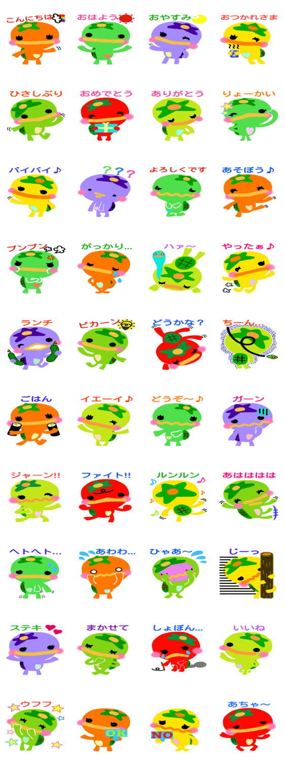 みかっぱとその仲間たち potato コメントをどうぞ ミカンみたいな、かっぱのようなスタンプを作りました。その他に、仲間たちには赤トマト、緑トマト、ブルーベリーや柚子の河童たちもいます。 このスタンプどう思う?!↓クリックで投票♪好き (0)かわいい (0)かっこいい (0)おもしろい (0)使いやすそう (0)欲しい (0)萌え (0)ほっこりする (0)おしゃれ (0)ゆるい (0)こわい (0)ウザい (0)キモい (0)ムカつく (0)持ってる (0)癒される (0)セクシー (0)個性的 (0)私は買わない (0)誰かプレゼントして! (0) 購入・プレゼントする Facebookでシェア Twitterでシェア