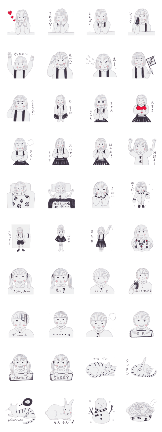 みち子ちゃんの気もち ひじき コメントをどうぞ 「うち田みち子。しょうわ36年2月10日生まれ。好きなあそびはゴムとび。なかよしの友だちは、まことくんとけい子ちゃん。ねことうさぎをかってるの。よろしくね。」 このスタンプどう思う?!↓クリックで投票♪好き (0)かわいい (0)かっこいい (0)おもしろい (0)使いやすそう (0)欲しい (0)萌え (0)ほっこりする (0)おしゃれ (0)ゆるい (0)こわい (0)ウザい (0)キモい (0)ムカつく (0)持ってる (0)癒される (0)セクシー (0)個性的 (0)私は買わない (0)誰かプレゼントして! (0) 購入・プレゼントする Facebookでシェア Twitterでシェア