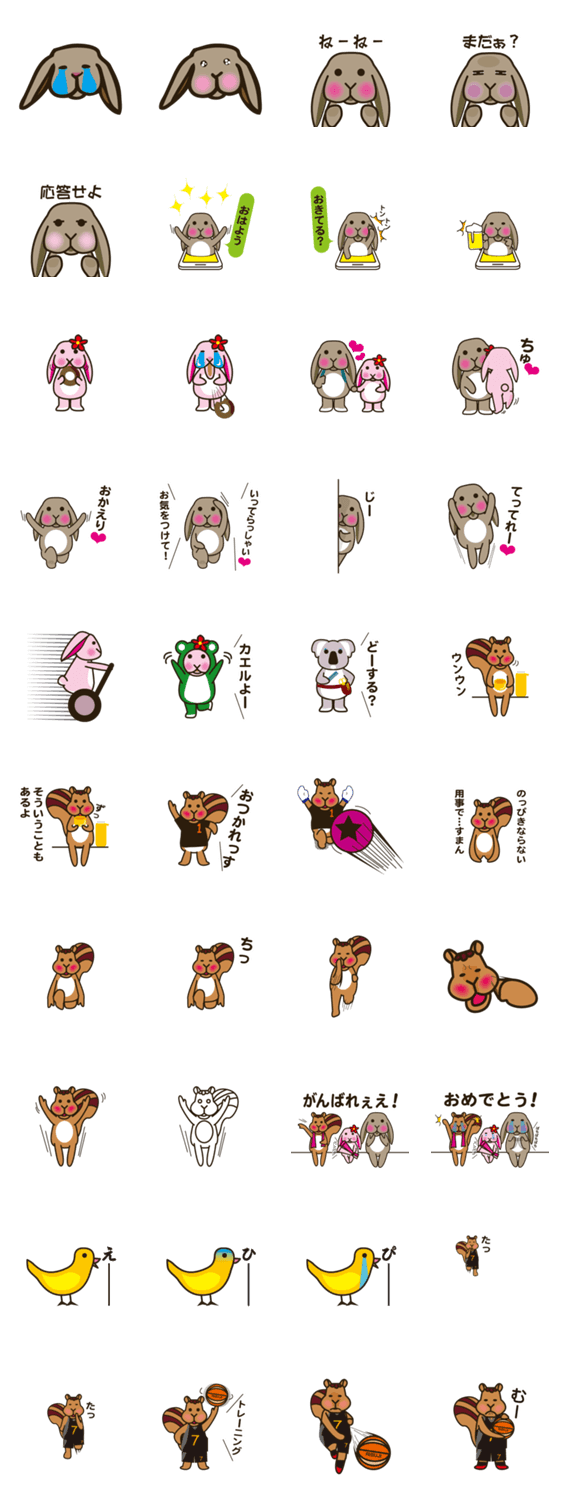 みみたれっ兎ポポと仲間たち2 りさ凡 コメントをどうぞ リサ凡制作のスタンプ第二弾!のんびり屋の飼い兎ポポとゆかいな仲間たちの日常。ポポに妹のナナも誕生。スポーツ好きの双子のリスに、おしゃべり好きの黄色い鳥にコアラ? このスタンプどう思う?!↓クリックで投票♪好き (0)かわいい (0)かっこいい (0)おもしろい (0)使いやすそう (0)欲しい (0)萌え (0)ほっこりする (0)おしゃれ (0)ゆるい (0)こわい (0)ウザい (0)キモい (0)ムカつく (0)持ってる (0)癒される (0)セクシー (0)個性的 (0)私は買わない (0)誰かプレゼントして! (0) 購入・プレゼントする Facebookでシェア Twitterでシェア