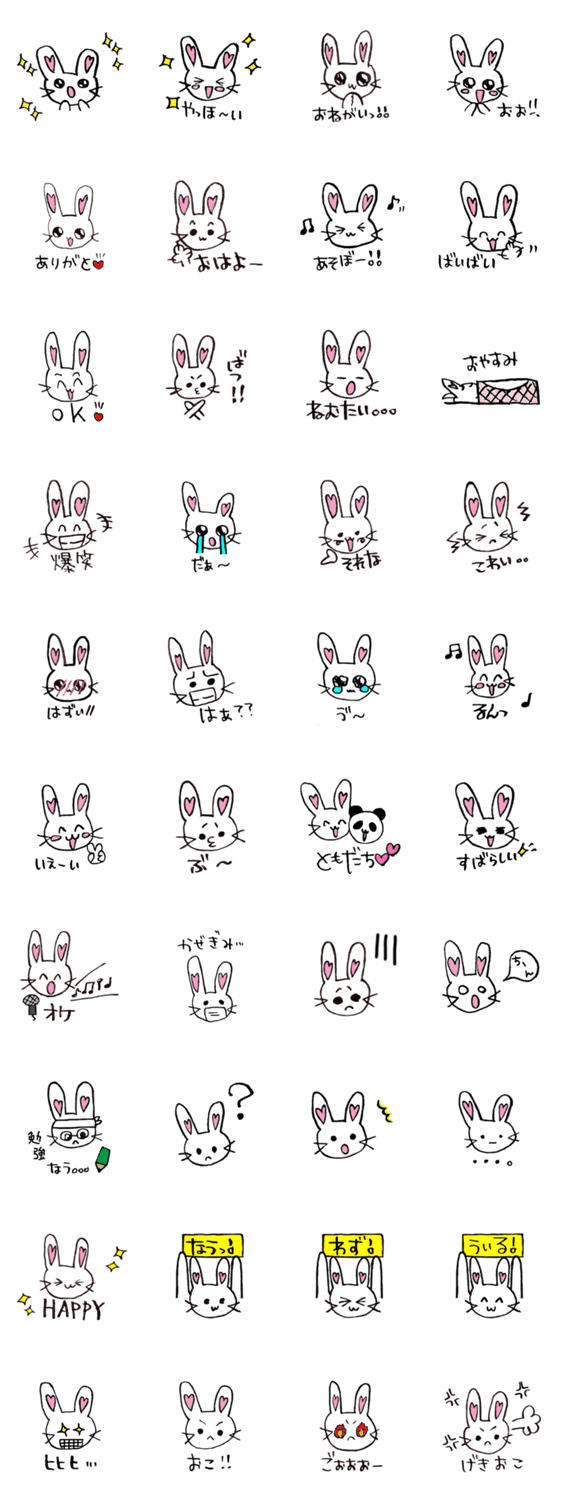 み~うさぎ み~う コメントをどうぞ 現役中学生の手書きイラストをスタンプ化しました。ノートの端に書いて気軽にやり取りするような身近な可愛さが特徴です。 このスタンプどう思う?!↓クリックで投票♪好き (0)かわいい (0)かっこいい (0)おもしろい (0)使いやすそう (0)欲しい (0)萌え (0)ほっこりする (0)おしゃれ (0)ゆるい (0)こわい (0)ウザい (0)キモい (0)ムカつく (0)持ってる (0)癒される (0)セクシー (0)個性的 (0)私は買わない (0)誰かプレゼントして! (0) 購入・プレゼントする Facebookでシェア Twitterでシェア