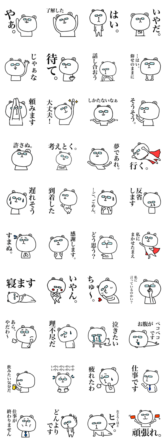 めがねくま。 imea'S コメントをどうぞ 眼鏡くまの落書きスタンプ。上から目線でちょっとムカつくけどご愛嬌です。 このスタンプどう思う?!↓クリックで投票♪好き (0)かわいい (0)かっこいい (0)おもしろい (0)使いやすそう (0)欲しい (0)萌え (0)ほっこりする (0)おしゃれ (0)ゆるい (0)こわい (0)ウザい (0)キモい (0)ムカつく (0)持ってる (0)癒される (0)セクシー (0)個性的 (0)私は買わない (0)誰かプレゼントして! (0) 購入・プレゼントする Facebookでシェア Twitterでシェア