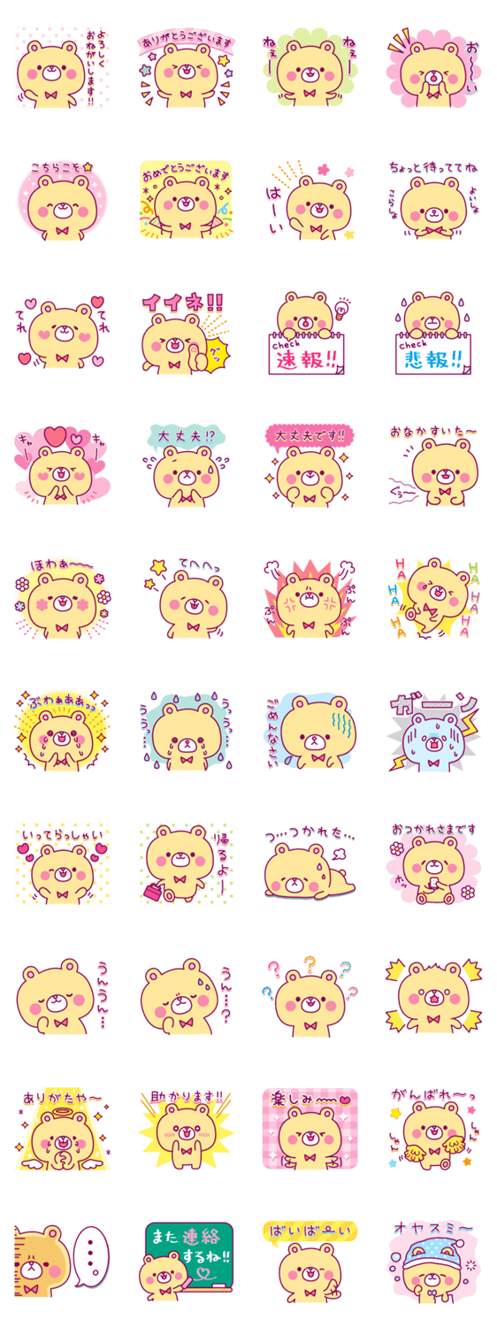もあクマくんの日常 りぃ コメントをどうぞ 使える!かわいいクマちゃんの日常会話スタンプです。 このスタンプどう思う?!↓クリックで投票♪好き (0)かわいい (0)かっこいい (0)おもしろい (0)使いやすそう (0)欲しい (0)萌え (0)ほっこりする (0)おしゃれ (0)ゆるい (0)こわい (0)ウザい (0)キモい (0)ムカつく (0)持ってる (0)癒される (0)セクシー (0)個性的 (0)私は買わない (0)誰かプレゼントして! (0) 購入・プレゼントする Facebookでシェア Twitterでシェア