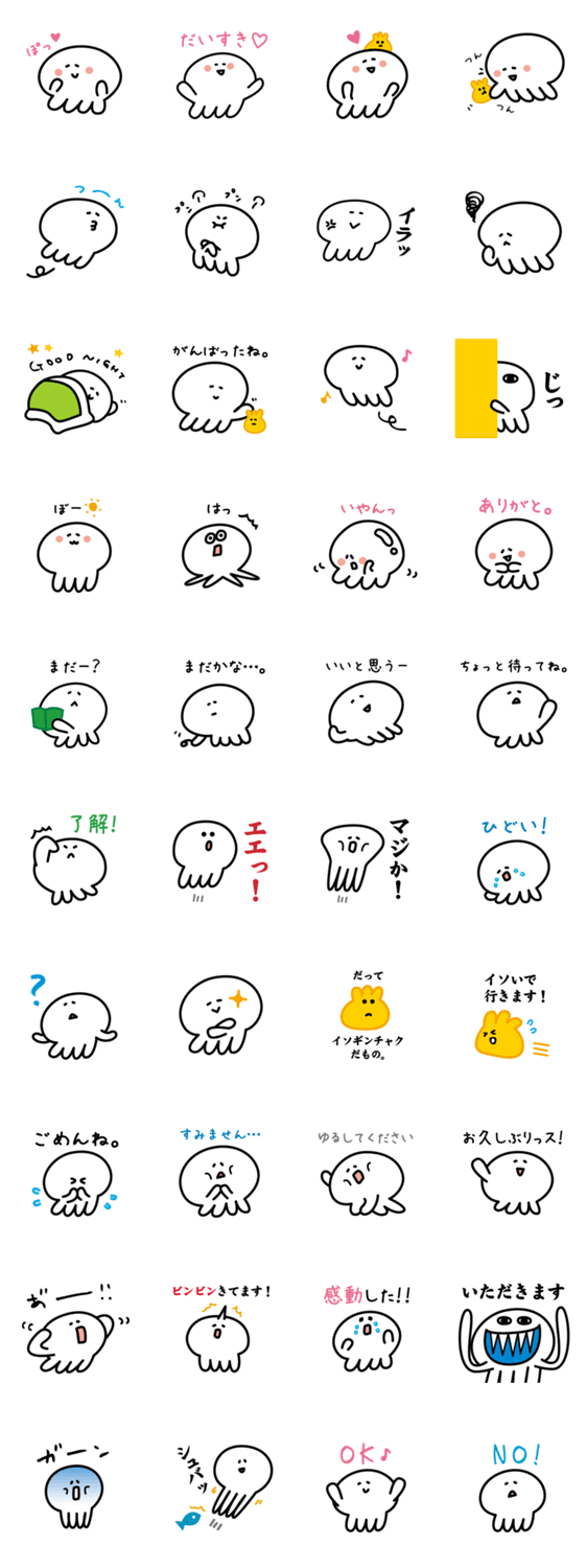 もちくらげ mochi コメントをどうぞ モチモチしたクラゲさんが、あなたの気持ちを伝えます。 このスタンプどう思う?!↓クリックで投票♪好き (0)かわいい (0)かっこいい (0)おもしろい (0)使いやすそう (0)欲しい (0)萌え (0)ほっこりする (0)おしゃれ (0)ゆるい (0)こわい (0)ウザい (0)キモい (0)ムカつく (0)持ってる (0)癒される (0)セクシー (0)個性的 (0)私は買わない (0)誰かプレゼントして! (0) 購入・プレゼントする Facebookでシェア Twitterでシェア