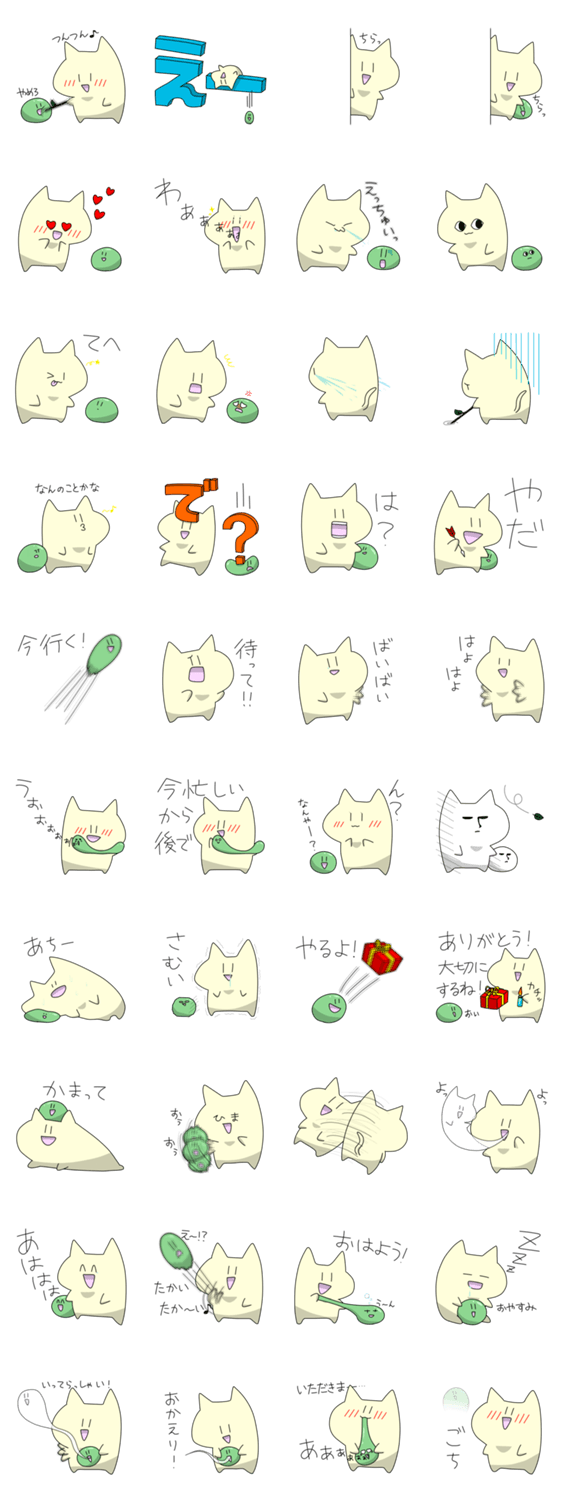 もっちねこ mei コメントをどうぞ もちみたいなまるいヤツとねこのスタンプです。 このスタンプどう思う?!↓クリックで投票♪好き (0)かわいい (0)かっこいい (0)おもしろい (0)使いやすそう (0)欲しい (0)萌え (0)ほっこりする (0)おしゃれ (0)ゆるい (0)こわい (0)ウザい (0)キモい (0)ムカつく (0)持ってる (0)癒される (0)セクシー (0)個性的 (0)私は買わない (0)誰かプレゼントして! (0) 購入・プレゼントする Facebookでシェア Twitterでシェア