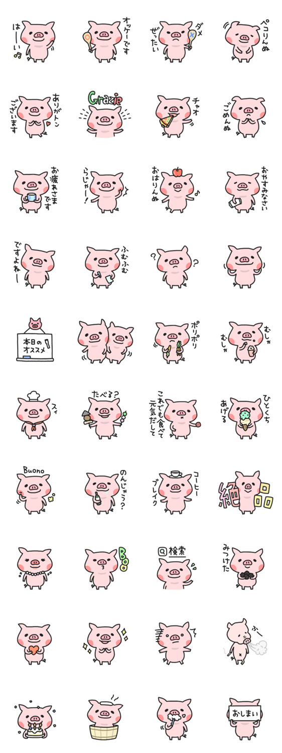 もっと腹ペコりんぬ(ブタ) あしる コメントをどうぞ 第2弾!挨拶や相づちなど、日常で使いやすい便利な豚さん。いつかイタリアへ行きたいと願っているのです。 このスタンプどう思う?!↓クリックで投票♪好き (0)かわいい (0)かっこいい (0)おもしろい (0)使いやすそう (0)欲しい (0)萌え (0)ほっこりする (0)おしゃれ (0)ゆるい (0)こわい (0)ウザい (0)キモい (0)ムカつく (0)持ってる (0)癒される (0)セクシー (0)個性的 (0)私は買わない (0)誰かプレゼントして! (0) 購入・プレゼントする Facebookでシェア Twitterでシェア