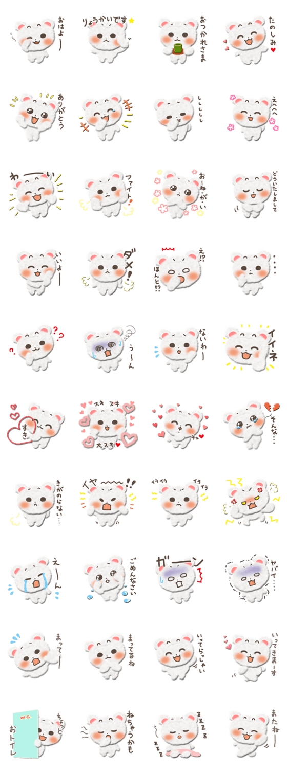 もふくま しかにく コメントをどうぞ フワフワしたカワイイ白クマのスタンプです。 このスタンプどう思う?!↓クリックで投票♪好き (0)かわいい (0)かっこいい (0)おもしろい (0)使いやすそう (0)欲しい (0)萌え (0)ほっこりする (0)おしゃれ (0)ゆるい (0)こわい (0)ウザい (0)キモい (0)ムカつく (0)持ってる (0)癒される (0)セクシー (0)個性的 (0)私は買わない (0)誰かプレゼントして! (0) 購入・プレゼントする Facebookでシェア Twitterでシェア