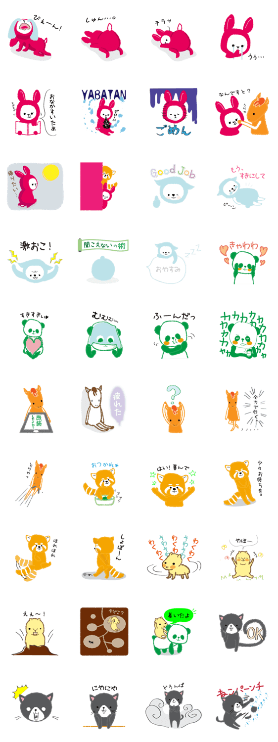もふもふ動物。うさぎとねことパンダと。 オガマユ コメントをどうぞ うさぎ、猫、パンダ、馬、レッサーパンダ、カピバラのもふもふした可愛いスタンプ。 このスタンプどう思う?!↓クリックで投票♪好き (0)かわいい (0)かっこいい (0)おもしろい (0)使いやすそう (0)欲しい (0)萌え (0)ほっこりする (0)おしゃれ (0)ゆるい (0)こわい (0)ウザい (0)キモい (0)ムカつく (0)持ってる (0)癒される (0)セクシー (0)個性的 (0)私は買わない (0)誰かプレゼントして! (0) 購入・プレゼントする Facebookでシェア Twitterでシェア